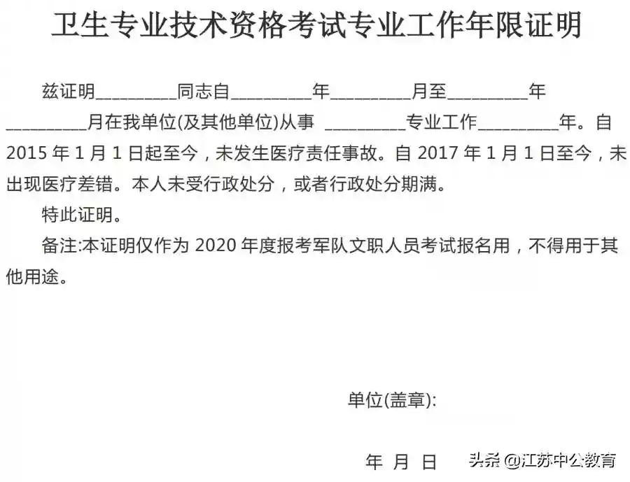 4.卫生专业技术资格考试专业工作年限证明