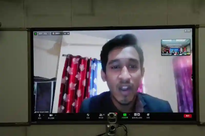 武汉纺织大学国际校友、2026届毕业生、来自孟加拉国的李赞先生应邀发言,他说自己在留学期间担任武汉纺织大学第一届国际学生会主席,曾深入中国农村,走进田间地头,见证了中国政府决战脱贫攻坚的伟大行动,更好地读懂了今天的中国。他希望本次研修班可以学习后疫情时代中国纺织业发展与创新经验,向更多纺织专业领域的专家学者们请教。